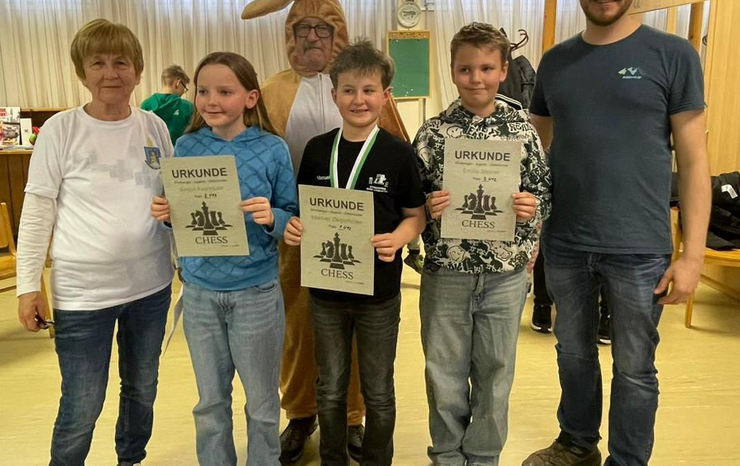 Für die jungen Kindberger U08-Spieler Philine Aldrian, Emil Brickmann und Erik Müllner war es die erste Turniererfahrung, und sie meisterten diese Herausforderung mit großem Einsatz und sichtlicher Begeisterung. Noel Eisner, der erst Mitte April sechs Jahre alt wird und in Mondsee dabei sein wird, zeigte eine bemerkenswerte Leistung: Er erreichte den hervorragenden 8. Gesamtplatz und gewann mit 4 Punkten auch die U08-Wertung. Nach dem Turnier wartete noch eine Überraschung auf die Kinder: Der Osterhase hatte sich angekündigt und brachte für jeden Teilnehmer ein gefülltes Osternest mit.